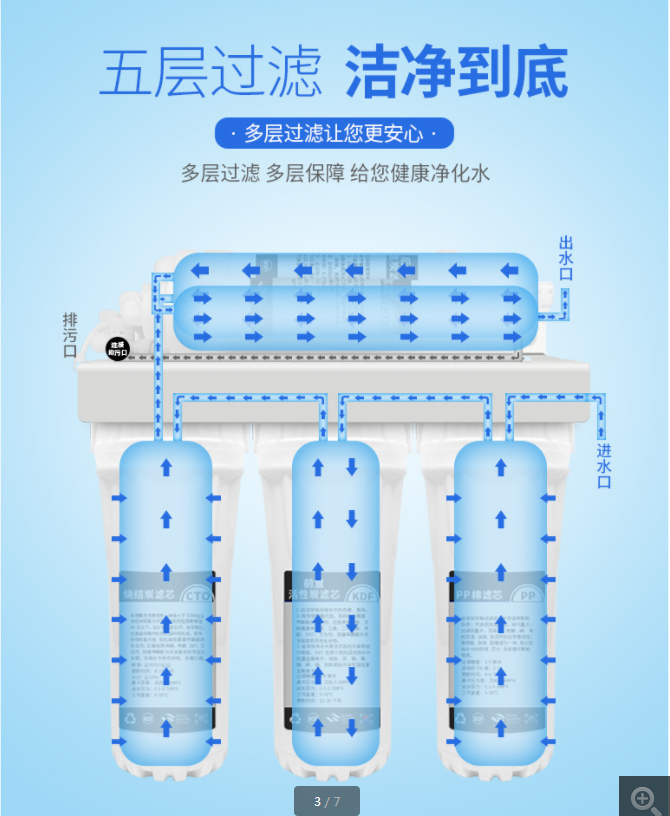滤芯配置:PP+颗粒碳+压缩碳+超滤膜+后置活性碳